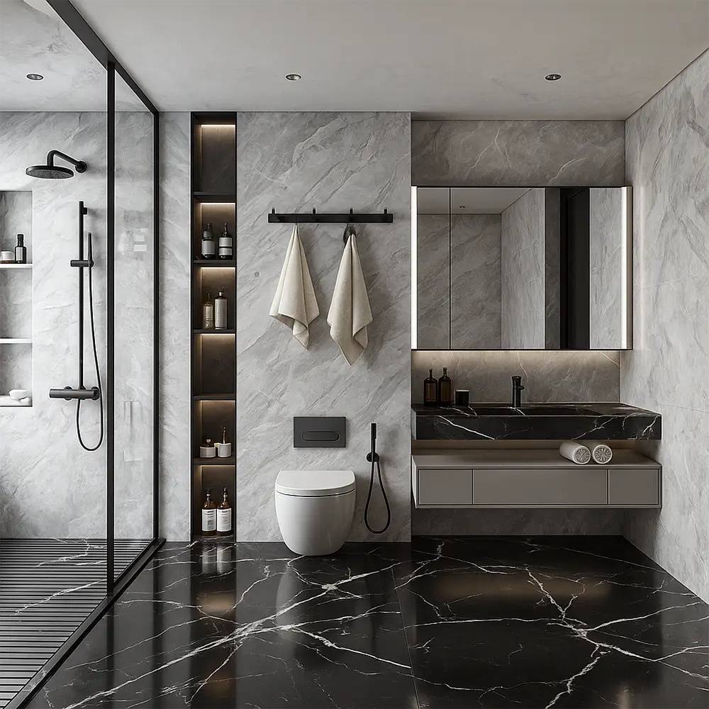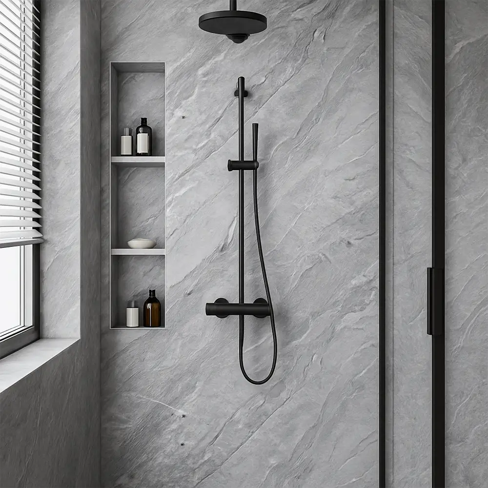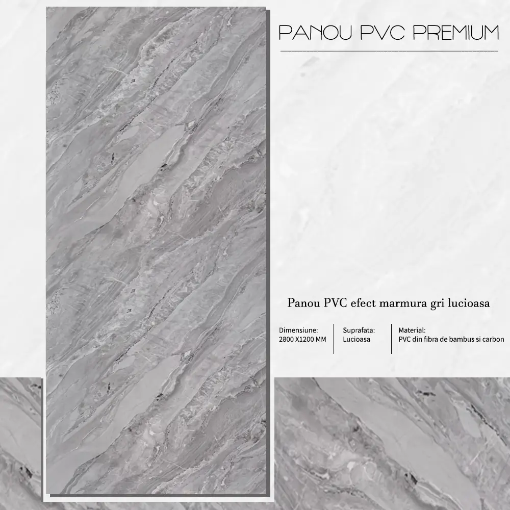 Panou PVC Premium Light Grey 128-10 este un panou decorativ modern, cu efect de marmura gri lucioasa, conceput pentru spatii elegante si contemporane. Fabricat dintr-un material compozit avansat, acest panou imbina PVC-ul de inalta calitate cu fibra de bambus si carbune, rezultand un produs extrem de rezistent, stabil si usor de montat.