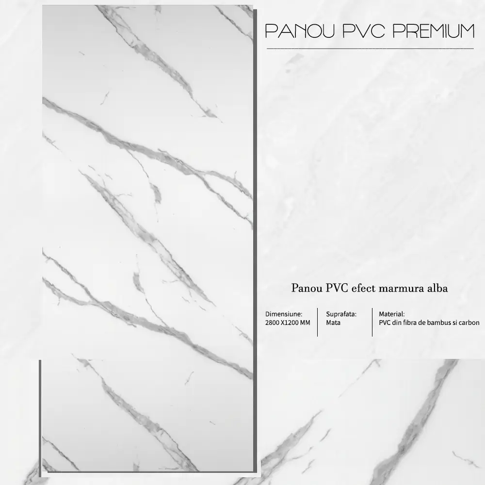 Panoul PVC Premium Marmura Carrara White P73-12810 este un panou decorativ modern, cu efect de marmura alba mata, conceput pentru spatii elegante si contemporane. Fabricat dintr-un material compozit avansat, acest panou imbina PVC-ul de inalta calitate cu fibra de bambus si carbune, rezultand un produs extrem de rezistent, stabil si usor de montat.