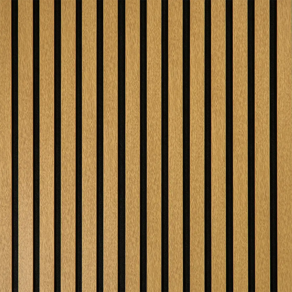 Panoul riflaj acustic decorativ teak de la KOBA DECOR este realizat din MDF si pasla, avand lamele verticale cu spatii uniforme si finisaj textura teak. Designul modern si aerisit evidentiaza peretii din living, dormitor, hol, birou sau spatii comerciale.